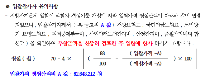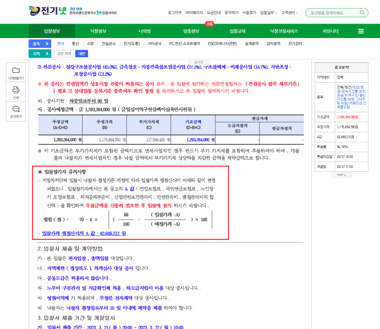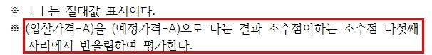 ② 요약 부분이 없다면 공고문 상세 내용 중 입찰참가자 유의사항 내에서도 산식 확인이 가능하니 걱정하지 마세요!