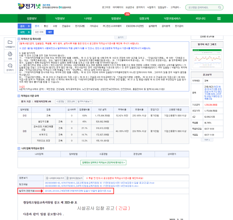 STEP 2) 공고에 해당하는 적격심사 기준서 입찰가격 평가란을 확인합니다.