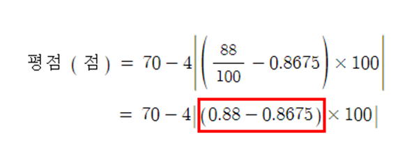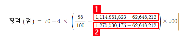 해당 산식에 금액을 대입하면 계산만 하면 점수를 쉽게 구하실 수 있습니다. ㅎㅎ