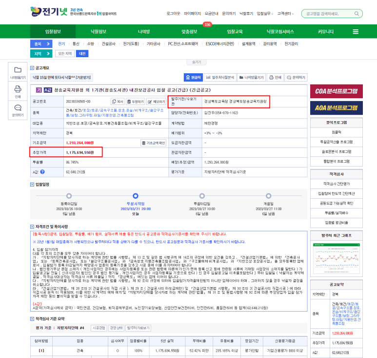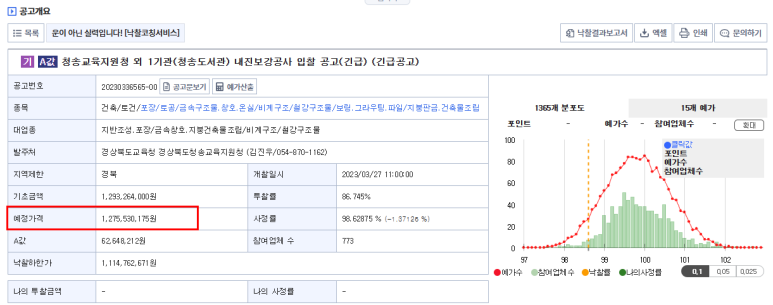 1) 예정가격 확인하고 투찰금액을 결정합니다.